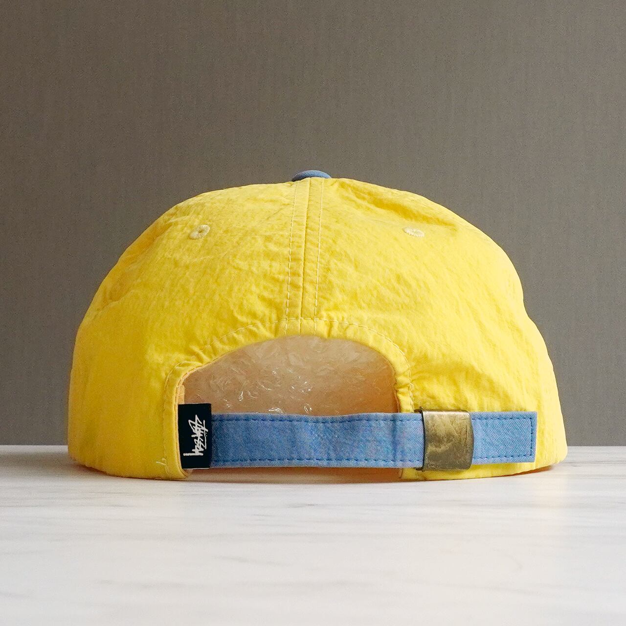 Stussy Sport ステューシースポーツ ナイロンキャップ ツートンカラー ウォッシュ加工 スナップバック Skateboarding CAP イエロー/ライトブルー
